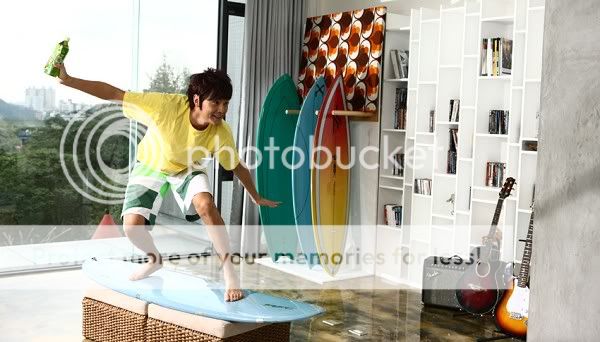 these pics are from their green tea ad. lols, he looks so cute nehhhzxzxzx~ C'MON BABY, SURF'S UP~ LOLS. :P