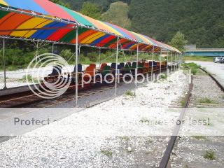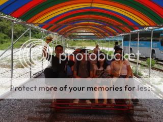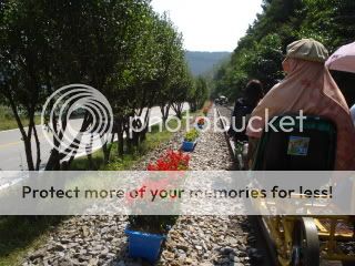 okayyyy, then we went to the Munkyong rail bike. the lines are actually railway tracks but they've been converted to bicycle tracks. so the thing we're riding on is a rail-running bicycle on those railway tracks.